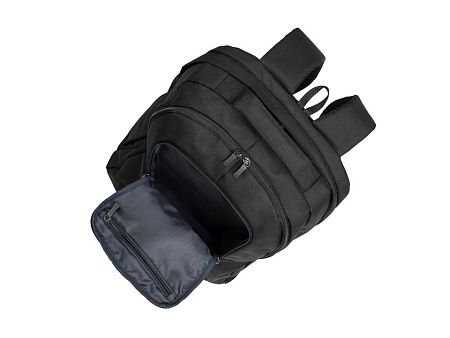 • Основное отделение для ноутбука с вертикальной загрузкой, имеет мягкие стенки и ремень для надежной фиксации ноутбука до 17".