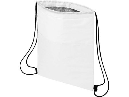Сумка-холодильник затягивается на шнурок черного цвета. С открытым передним карманом. Вмещает 12 банок. Прочность до 5 кг.