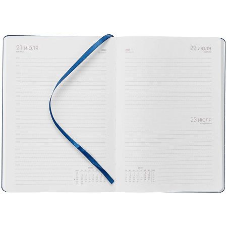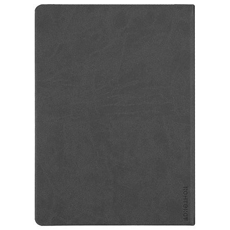 Ежедневник с твердой обложкой, выполнен из материала Latte, темно-серый ЕЕ, дополнен ляссе в цвет обложки.