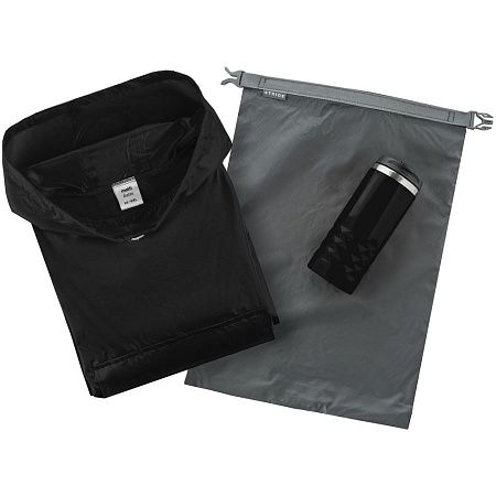 мешок - нейлон, рипстоп; термостакан - пластик, нержавеющая сталь; дождевик - полиэстер