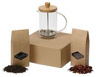 френч-пресс 800 мл, чай черный с бергамотом 70 мл, чай фруктовый 90 мл, бумажный наполнитель 50 г, подарочная упаковка 26,4 х 25,7 х 10,1 см