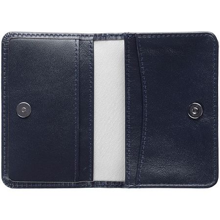 Футляр изготовлен из телячьей кожи, контрастная подкладка из искусственной свиной кожи. Вместительность до 40 визиток.