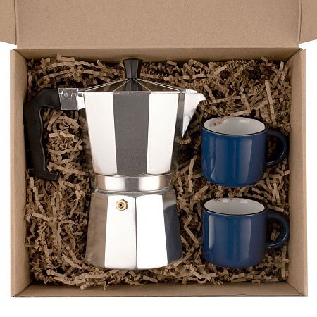 кофеварка - алюминий, пластик; кружка - фаянс; коробка - микрогофрокартон