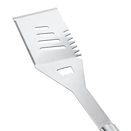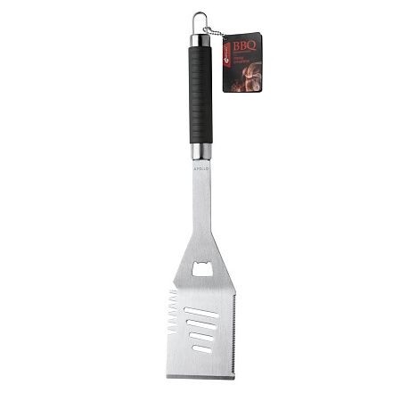 Лопатка Ribeye предназначена для переворачивания продуктов на гриле, мангале или жаровне. Прорези позволяют стекать излишкам масла, соуса или жидкостей. Рабочая часть лопатки изготовлена из нержавеющей стали и выдерживает высокие температуры.