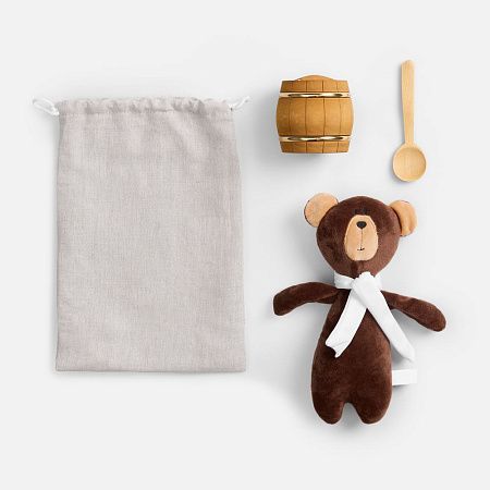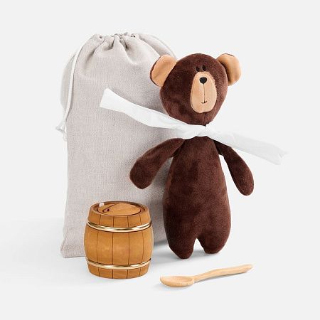 игрушка - велюр, полиэстер; бочонок - липа; мешок - лен