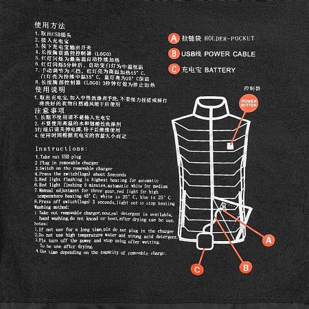 верх - полиэстер 100%; подкладка - полиэстер 100%, электрогрелка - углеродное волокно (графен)