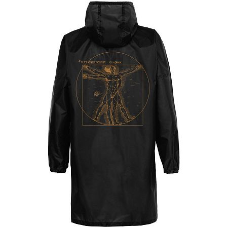 Ветреная погода может внести свои коррективы даже в идеальную симметрию! Сильный порыв — и человек с картины Леонардо да Винчи стал ВЕТРОвианским. Главное — успеть удержать фиговый листочек на нужном месте.Плащ-дождевик из ткани таффета на молнии с капюшоном. Складывается в мешочек — удобно брать с собой.