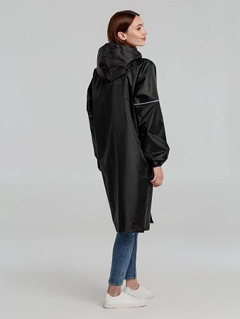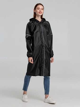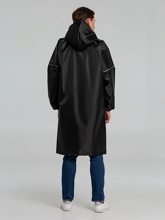 Плащ-дождевик из ткани оксфорд на кнопках с капюшоном. Световозвращающие элементы на рукавах и планке позволяют быть замеченным в темное время суток. Подготовим для вас технический макет с размещением лого или другого