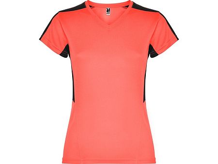 Женская футболка с коротким рукавом. V-образная горловина. Комбинация из 2 полотен контрастного цвета: структурное полотно на полочке и дышащая 3D сетка на плечах и боках.