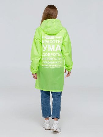 Плащ-дождевик из ткани таффета на молнии с капюшоном. Складывается в мешочек — удобно брать с собой.