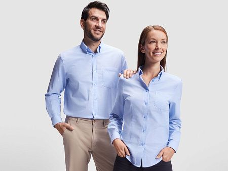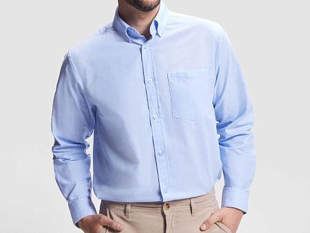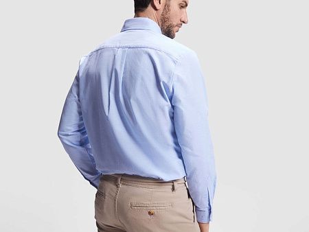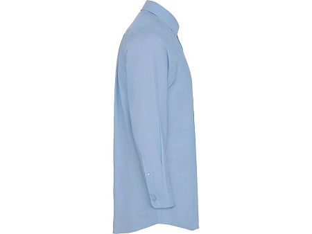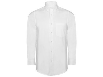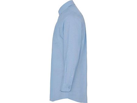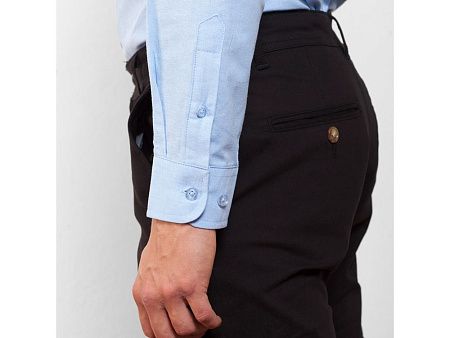 Мужская рубашка с длинным рукавом, накладной карман слева. Планка на пуговицах. Отложной воротник на стойке. Манжета регулируется по ширине с помощью 2-х пуговиц. Кокетка на спинке.