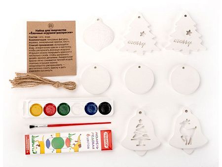 гипсовые фигурки- 8шт, веревка, акварельные краски, кисть