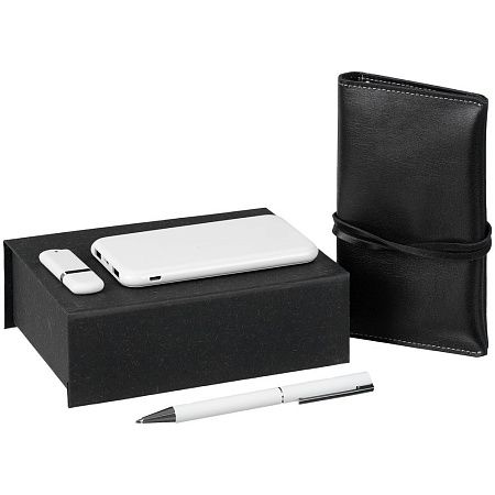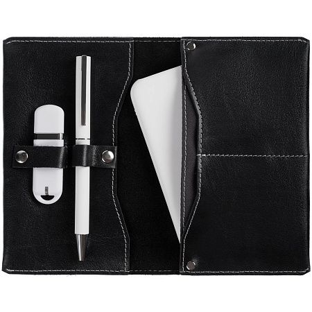 органайзер - натуральная кожа; аккумулятор - пластик, покрытие софт-тач; флешка - пластик, покрытие софт-тач; ручка - металл, покрытие софт-тач