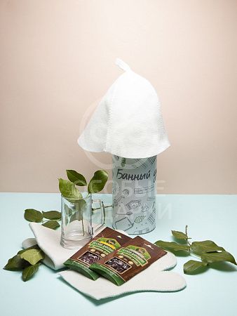 1.Набор для бани (многоразовый коврик, рукавица, шапка для парилки)