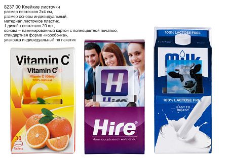 – листочки: количество в упаковке ____ (станд. 20 шт); материал пластик / бумага; цвет ____ (станд., по запросу); печать 1-2 цвета / полноцветная;
