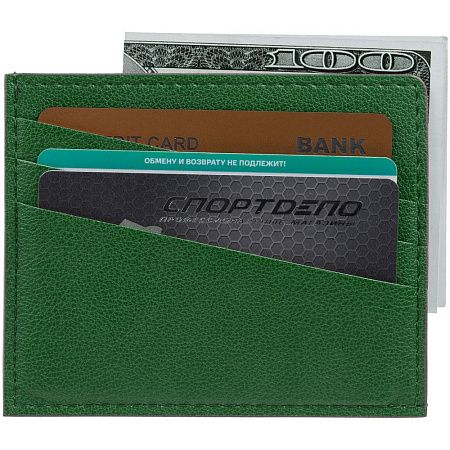 Чехол выполнен из материала Petrus, синий НН, дополнен окрашенным срезом края и внутренним карманом из серого картона. Имеет 4 отделения для кредитных карт и 1 отделение для купюр.