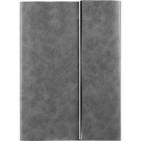 Ежедневник с гибкой обложкой, клапаном на магните и металлической отделкой клапана. Выполнен из материала Petrus, серый СС, дополнен серым ляссе.