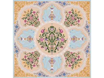 Принт аксессуара образуют знаменитые орнаменты востока — гирих (бесконечный “узел”) и ислими (“путь в божественный сад”). Непрерывные витиеватые линии в сочетании с узорами из гибких стеблей с зеленой листвой и пестрыми соцветиями завораживают, погружают в состояние медитации, постижения тайны мироздания через призму счастья и красоты.