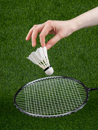 волан: голова - ЭВА, юбка - гусиное перо; ракетка: обод - алюминий, стержень - сталь; чехол - полиэстер