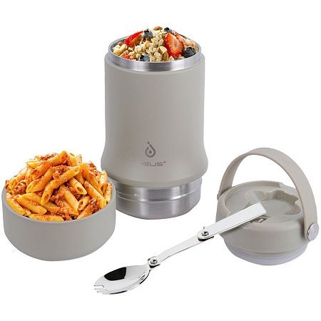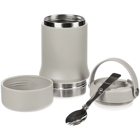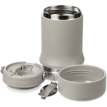 корпус - нержавеющая сталь, 18/8; крышка - пластик, пищевой силикон; ручка - полиуретан, термопластичный; ложка - нержавеющая сталь