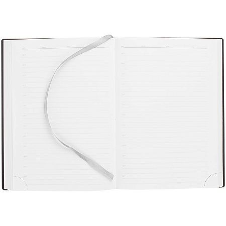 Ежедневник с гибкой обложкой, выполнен из материала Latte, темно-синий НН, дополнен резинкой шириной 1 см, капталом и ляссе темно-синего цвета.