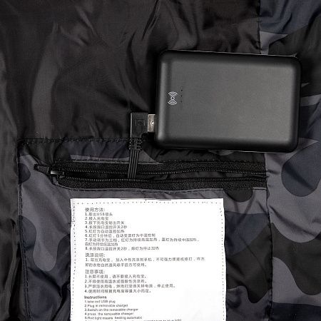 - Рекомендуем использовать внешний аккумулятор не менее 5000 мАч (для него есть дополнительный внутренний карман на молнии)