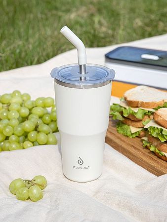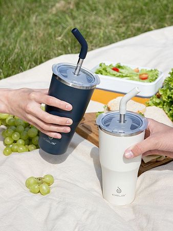 корпус - нержавеющая сталь, 18/8; крышка - пластик; трубочка - нержавеющая сталь, пищевой силикон