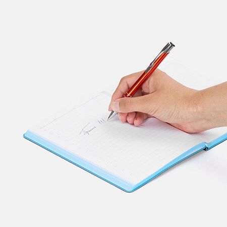 Яркая шариковая ручка с глянцевым цветным корпусом и хромированными деталями.