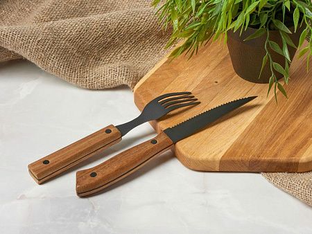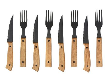 нож для стейка 22,5 x 2,7 см - 4шт, вилка для стейка 20 x 2,7 см - 4шт