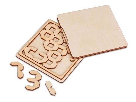 Деревянная головоломка "Цифры" - прекрасный способ занять себя в дороге. Корпус изготовлен из берёзовой фанеры и используется как игровое поле, не занимая много места в сумке.