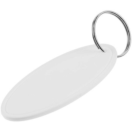 Лаконичный брелок из полипропилена с металлическим кольцом.