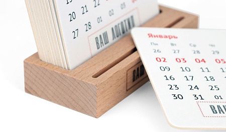 Размеры: деревянная подставка 105х72х20 мм, календарь: 90х90 мм