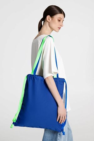 Прочный и вместительный трансформер — шопер и рюкзак на шнурках — разработан в рамках единой коллекции одежды и аксессуаров, поэтому легко комбинируется с ее элементами. Специально спроектированные лекала и технологии пошива открывают простор для любых вариантов кастомизации и нанесения изображений. На видимой части изделий нет лейблов с айдентикой бренда, а название бренда с уходника легко удалить.