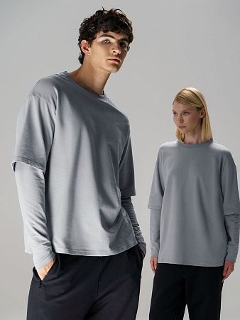 Футболка оверсайз в трендовом исполнении double sleeve (с двойным рукавом) — отличный вариант для создания повседневного образа. Легкая дышащая хлопковая ткань с гладкой трикотажной фактурой приятна к телу, а расслабленный оверсайз силуэт делает футболку Kosmos идеальной для любых жизненных маневров.