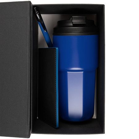 термостакан - нержавеющая сталь, полипропилен; обложка для паспорта - искусственная кожа; ручка - металл, пластик; коробка - переплетный картон