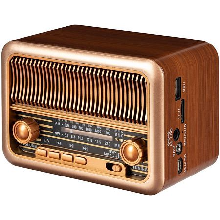 Корпус радиоприемника выполнен из качественного пластика с имитацией натурального дерева.