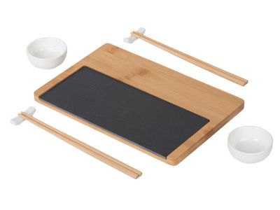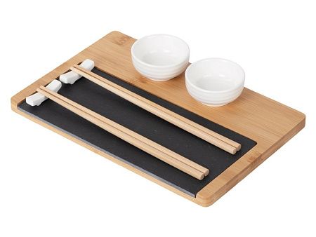 подставка из бамбука и сланца, керамическая соусница 2 шт., набор палочек для суши 2 шт., подставки для палочек 2 шт.