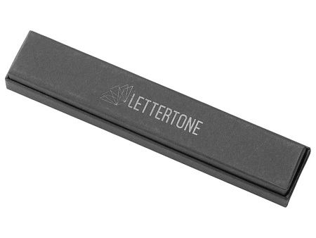 Ручка упакована в чёрный матовый футляр с логотипом бренда Lettertone на дне.