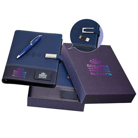 • блокнот, А5, 80 листов, с встроенным внешним аккумулятором 8 000 mAh и функцией беспроводной зарядки, 240 × 180 × 38 мм