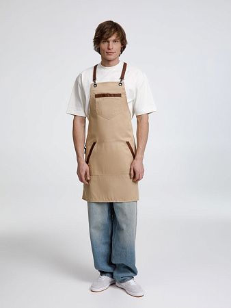 фартук - полиэстер 65%, хлопок 35%, плотность 240 г/м²; лямки - искусственная кожа; фурнитура - металл