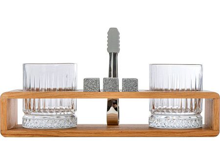 деревянная подставка 28 х 11,6 х 5,7 см, бокал 210 мл- 2 шт, камень для виски 2 х 2 см- 6 шт, щипцы, упаковочная коробка
