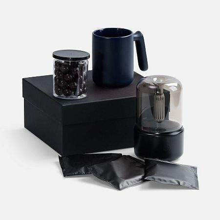 увлажнитель - пластик; кружка - каменная керамика; коробка - переплетный картон