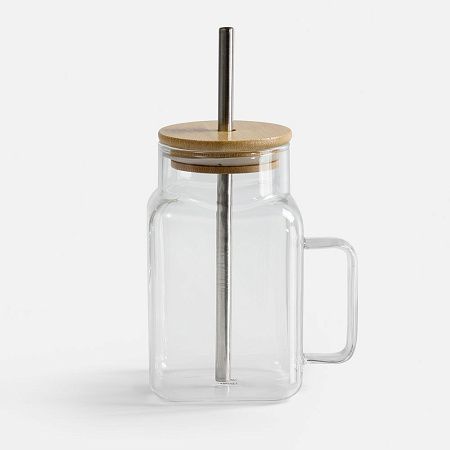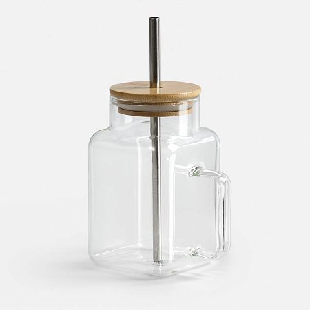 боросиликатное стекло; крышка - бамбук; трубочка - металл