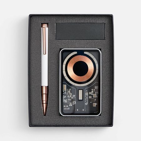 аккумулятор - металл, акриловое стекло; ручка - металл; коробка - переплетный картон, бумага malmero