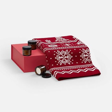плед - акрил 100%, плотность 430 г/м²; подсвечник - стекло, крышка - пластик; свеча - парафин, соевый воск, парфюмерная композиция; коробка - переплетный картон, бумага classy covers