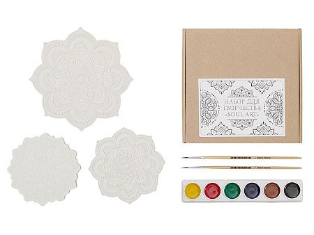 3 гипсовых фигурки, акварельные краски, 2 кисточки