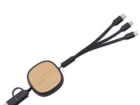 Универсальный кабель с ретрактором 3-в-1 «Retrax» — это стильное и практичное решение для зарядки и передачи данных на ходу. Компактный корпус из экологичного бамбукового покрытия сочетается с удобной системой автоматического складывания, что делает его идеальным спутником в путешествиях, на работе и в повседневной жизни. Кабель оснащён тремя разъёмами: USB-A, Micro-USB и Lightning, обеспечивая совместимость с широким спектром устройств — от смартфонов до планшетов и других гаджетов. Благодаря прочной конструкции и элегантному дизайну, «Retrax» станет незаменимым аксессуаром для тех, кто ценит функциональность и стиль. Поставляется в фирменной коробке bamboo collection.