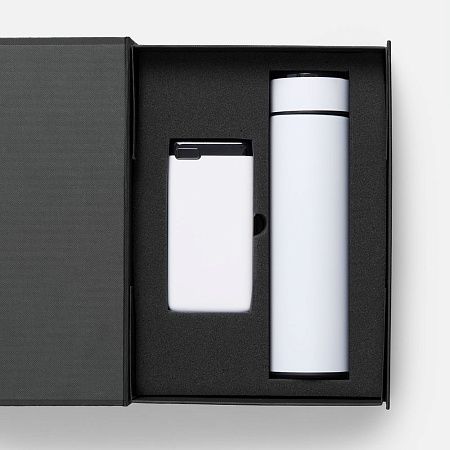 аккумулятор - пластик; смарт-бутылка - нержавеющая сталь, 304 внутри, 201 снаружи; коробка - переплетный картон