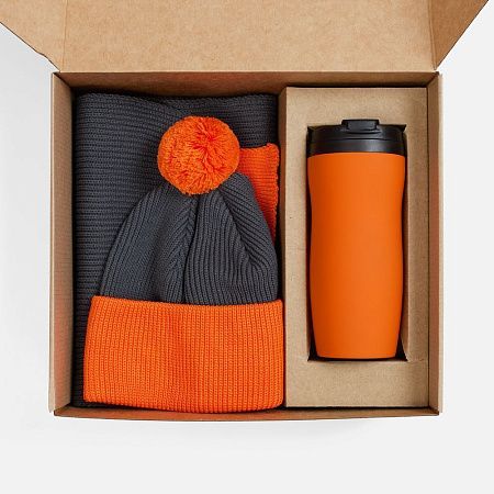 шарф, шапка - акрил 100%; термостакан - нержавеющая сталь; покрытие софт-тач; крышка, внутренняя колба - пластик; коробка - микрогофрокартон, Т-23Е