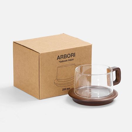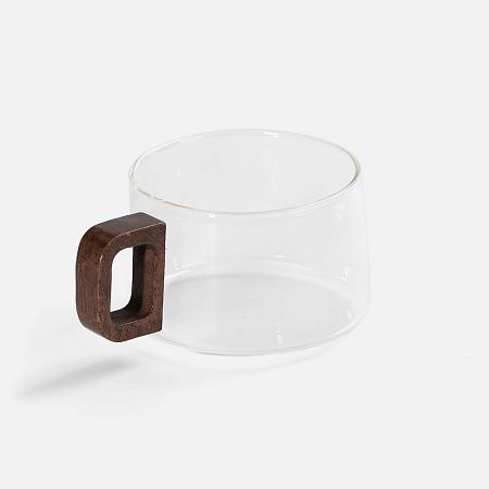 чашка - боросиликатное стекло; ручка, блюдце - дерево, орех